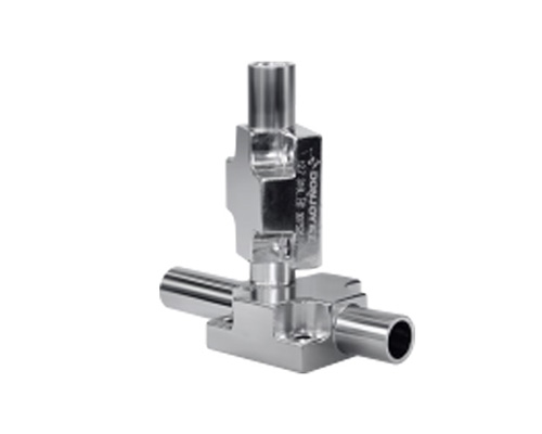 主要運(yùn)用在高純水或其它分配系統(tǒng)的用水點(diǎn)垂直管路上,可有效減少管路死角。其中一個(gè)閥水平放置,并保持一定自排空角度,另一個(gè)閥是主閥,垂直放置,當(dāng)該閥打開時(shí),其出口就是一個(gè)沒有細(xì)菌滋生或受工藝交叉感染的取樣口。